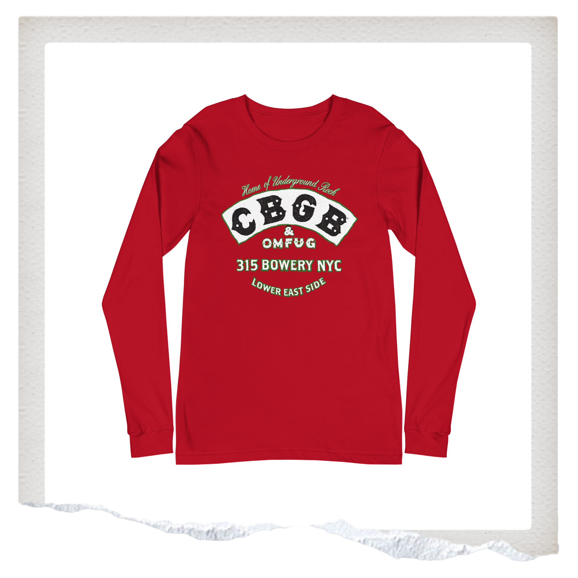 A classic long sleeve tee made with soft 100% ring spun cotton. Featuring limited edition, holiday-themed CBGB artwork across the front.